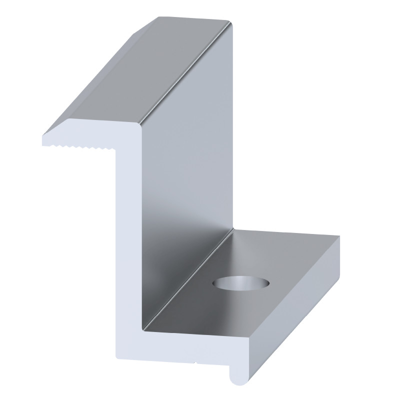 Hliníková koncová svorka pre pripevnenie mono a polykryštalických fotovoltaických (solárnych) panelov na šikmé a ploché strechy ako aj samostatne stojace systémy.