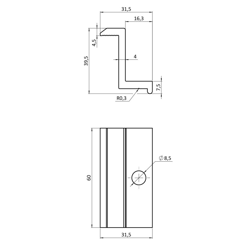 Hliníková koncová svorka na upevnenie solárnych panelov,koncová výška 35 mm