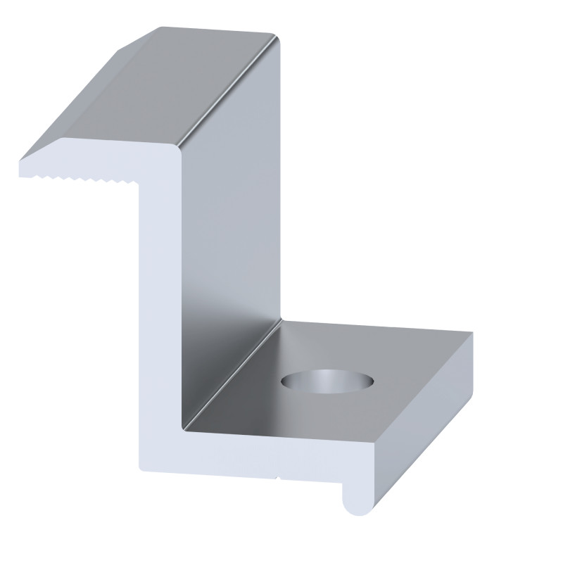 Hliníková koncová svorka pre pripevnenie mono a polykryštalických fotovoltaických (solárnych) panelov na šikmé a ploché strechy ako aj samostatne stojace systémy.