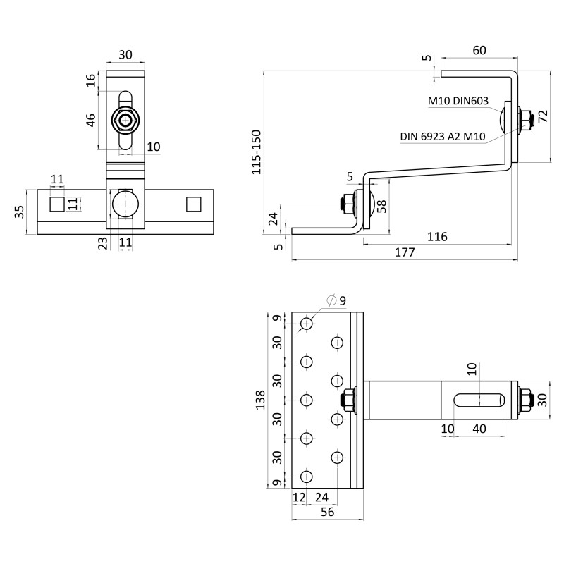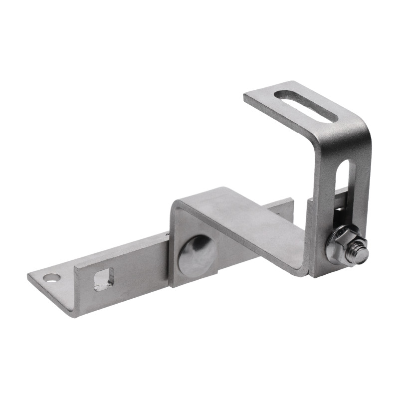 Strešný hák je špeciálne navrhnutý a vyrobený pre bezpečné a efektívne uchytenie solárnych panelov na strechách budov. Tento hák poskytuje spoľahlivé uchytenie solárnych modulov, pričom zabezpečuje optimálnu pevnosť a bezpečnosť v náročných stavebných podmienkach