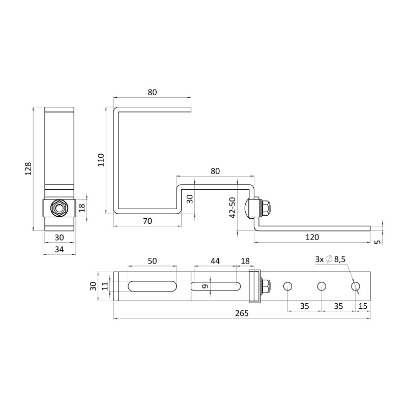 Strešný hák vhodný pre kovové krytiny z lisovaného a drveného kameňa typu Gerard/bobrovka. Nerez A2