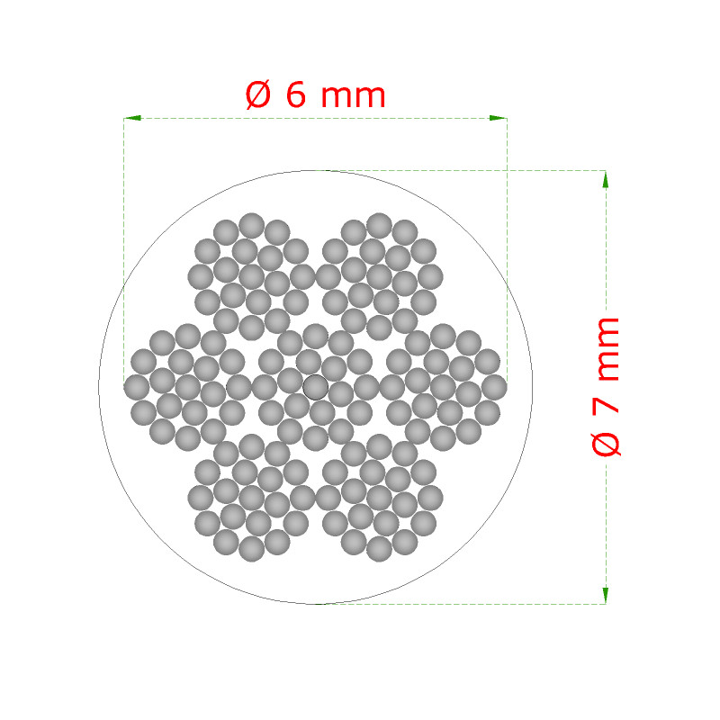 Oceľové lanko ø6mm (7x19 dr.) /galvanicky pozinkované s PVC obalom - celková hrúbka ø7mm