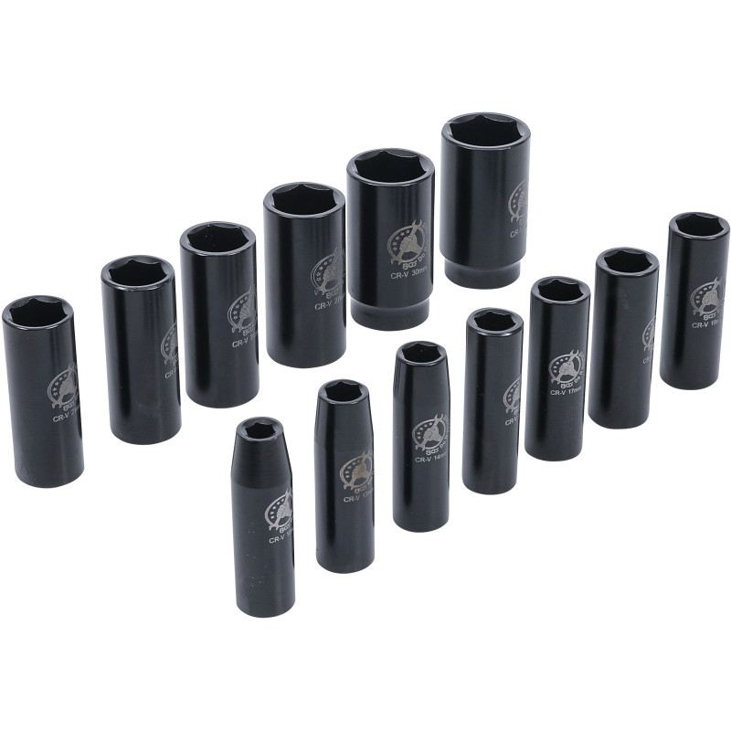 Táto sada nadstavcov je určená pre rázové uťahováky s upínaním 1/2". Obsahuje 13 nadstavcov v rôznych veľkostiach od 10 mm do 32 mm, čím umožňuje široké spektrum použitia. Nadstavce sú vyrobené z vysoko kvalitnej chróm-vanádiovej ocele a sú odolné voči opotrebeniu.