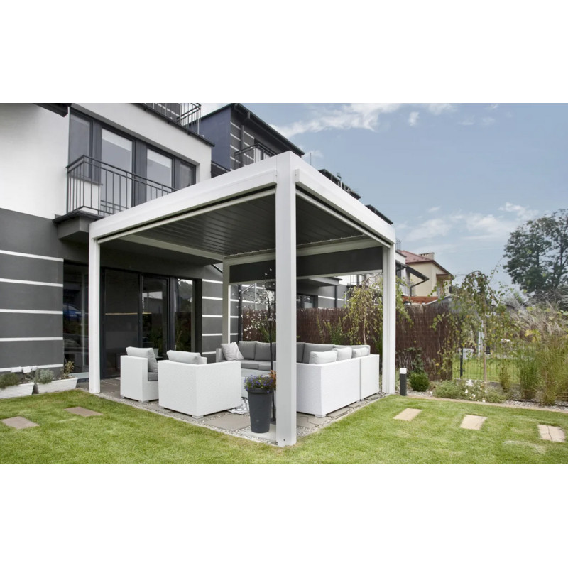 Strecha pergoly SB400 je vyrobená z pohyblivých hliníkových lamiel, ktoré umožňujú individuálne nastavenie úrovne zatienenia v závislosti od vonkajších podmienok a preferencií používateľov. Pohyb lamiel sa ovláda diaľkovo, čo zaručuje maximálny komfort. Lamely v zatvorenej polohe poskytujú dodatočnú ochranu pred dažďom.