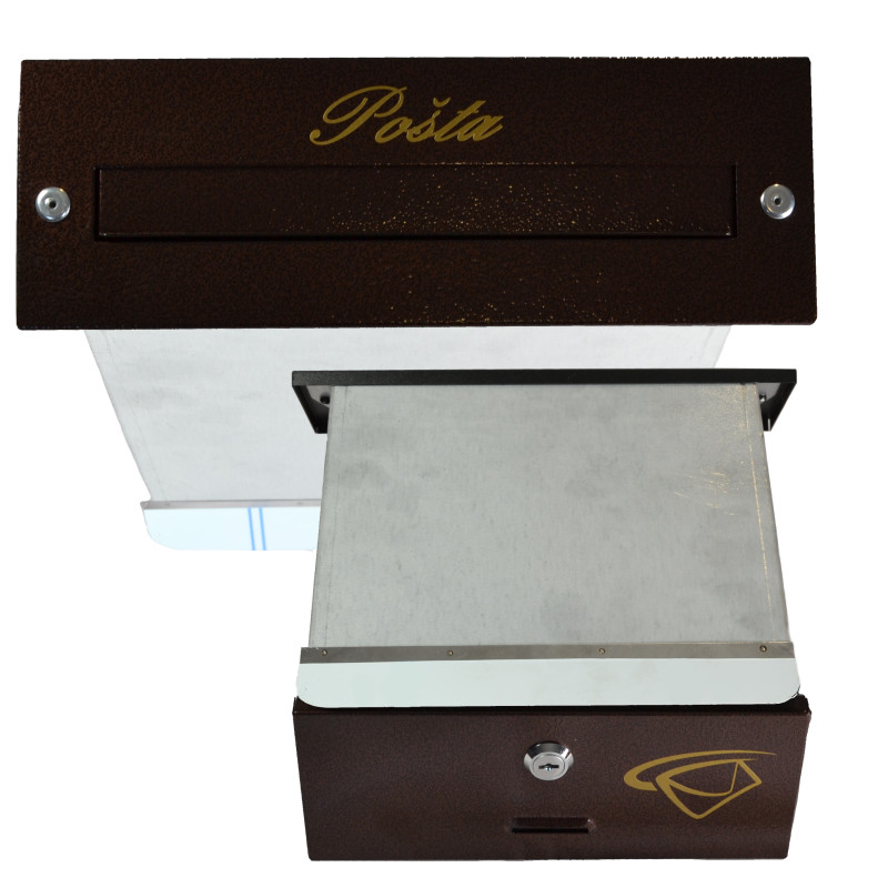 DOPREDAJ! Schránka poštová, 275x90x400 mm, pre zabudovanie do múru, pre max širku 350mm, max. formát listu: A4, farba: medená