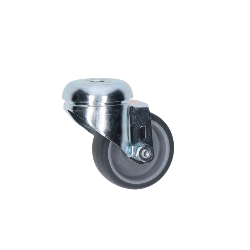 Otočné koliesko, vidlica vyrobená z oceľového výlisku - zinkovaná. Dvojitá guľôčková dráha v hlave otoče. Stredový otvor na čap priemeru 11mm. Stred kolieska vyrobený z polypropylénu, behúň kolieska z termoplatickej gumy - TENTEPRÉN. Klzné uloženie.