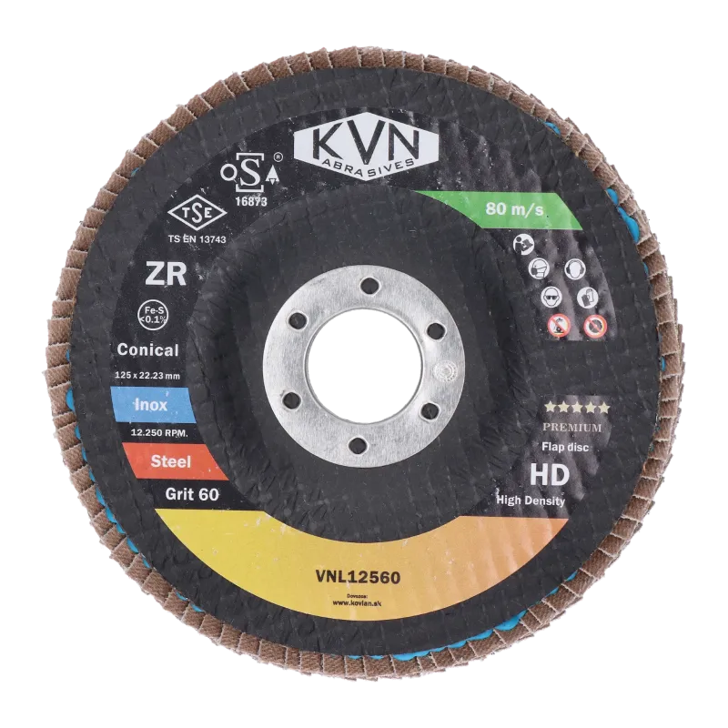 Prémiový lamelový kotúč na oceľ a nerez, 125mm, zrno 60, extra hrubý PREMIUM, 100% zirconia, kónický