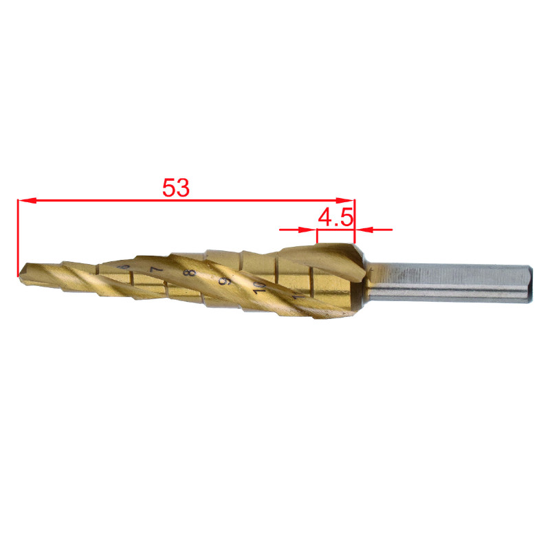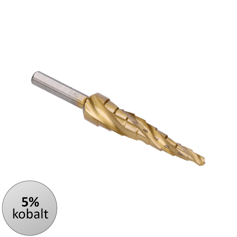Stupňovitý kužeľový vrták HSS M35 TiN 4-12, 3 ploché bočné úchopy