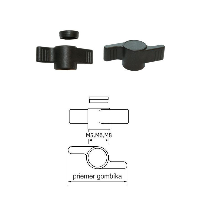 ø-40,M6 Plastová motýliková matica PA, čierna, bez závitu, bez matice