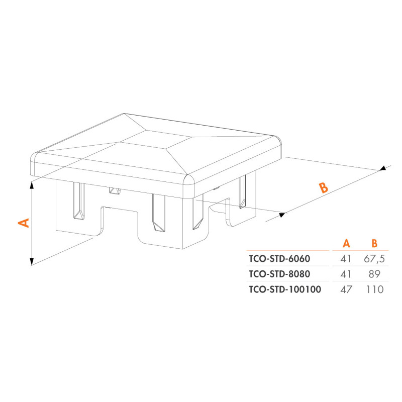 Polypropylenová čtvercová stříška chrání horní okraj sloupku.