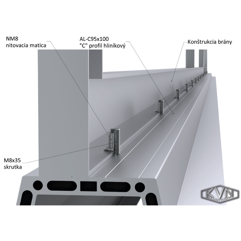 Hliníkový samonosný C profil je navrhnutý tak, aby jeho parametre spĺňali vysoké nároky na kvalitu brán. Jeho využitie je pre hliníkové brány s dĺžkou prejazdu max. 6,5 m a hmotnosťou max.150 kg.