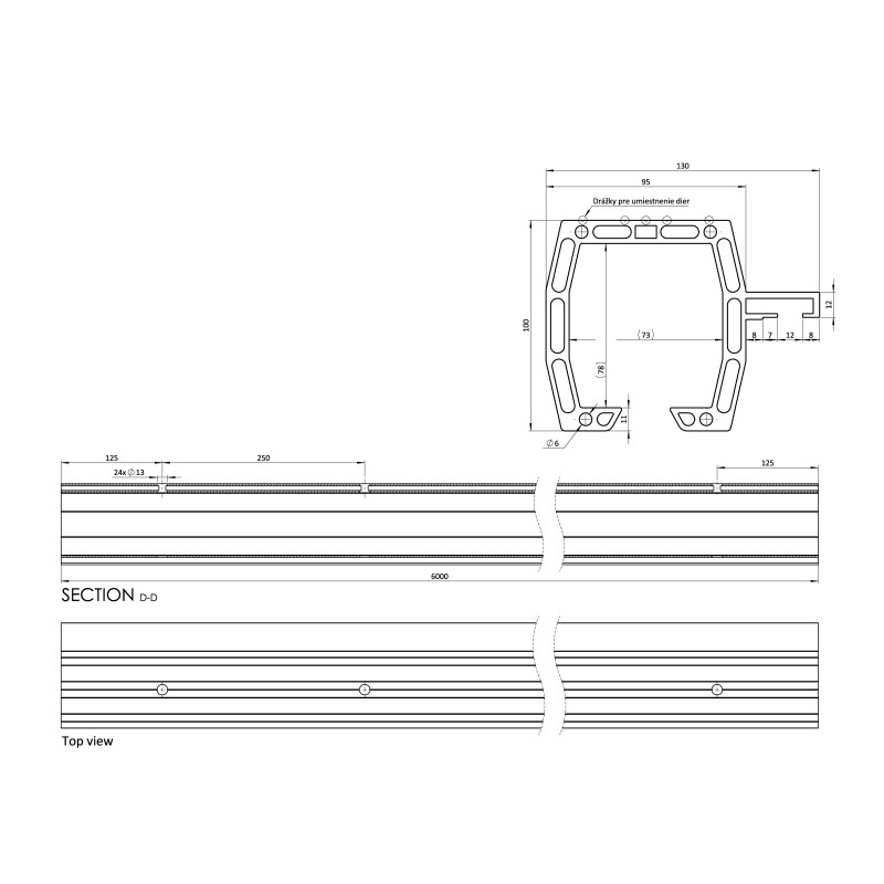 Hliníkový samonosný C profil je navrhnutý tak, aby jeho parametre spĺňali vysoké nároky na kvalitu brán. Jeho využitie je pre hliníkové brány s dĺžkou prejazdu max. 6,5 m a hmotnosťou max.150 kg.