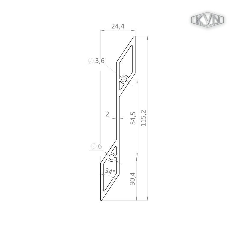2 mm hrubý profil na výplň 115,2x24,4mm, materiál EN AW-6060 T66, prírodný hliník bez povrchovej úpravy, cena za meter