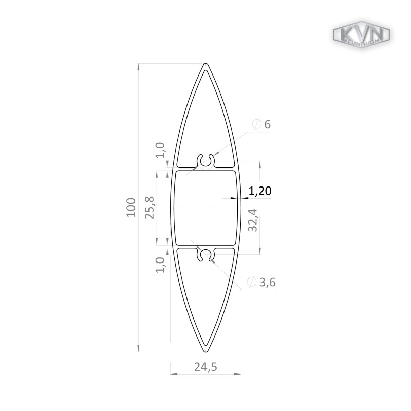 Profil na výplň 100x24,5mm, materiál EN AW-6060 T66, prírodný hliník bez povrchovej úpravy, cena za meter