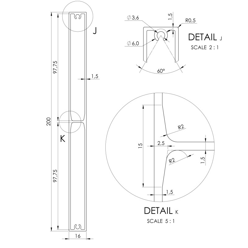 Profil na výplň 200x16mm, materiál EN AW-6060 T66, prírodný hliník bez povrchovej úpravy, cena za meter