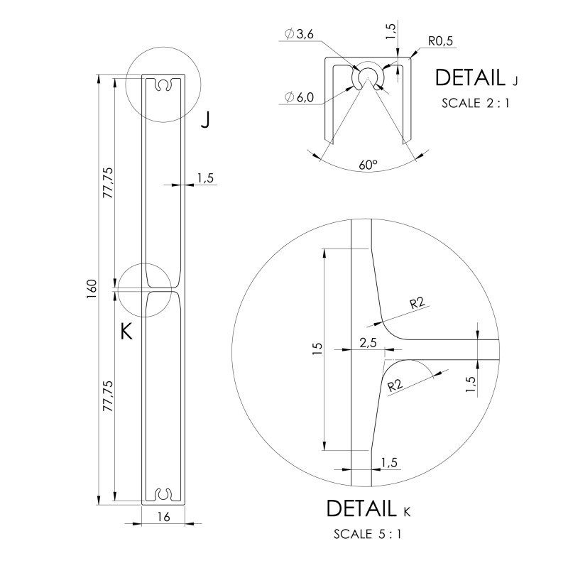 Profil na výplň 160x16mm, materiál EN AW-6060 T66,práškový lak, štruktúra RAL7016, cena za meter