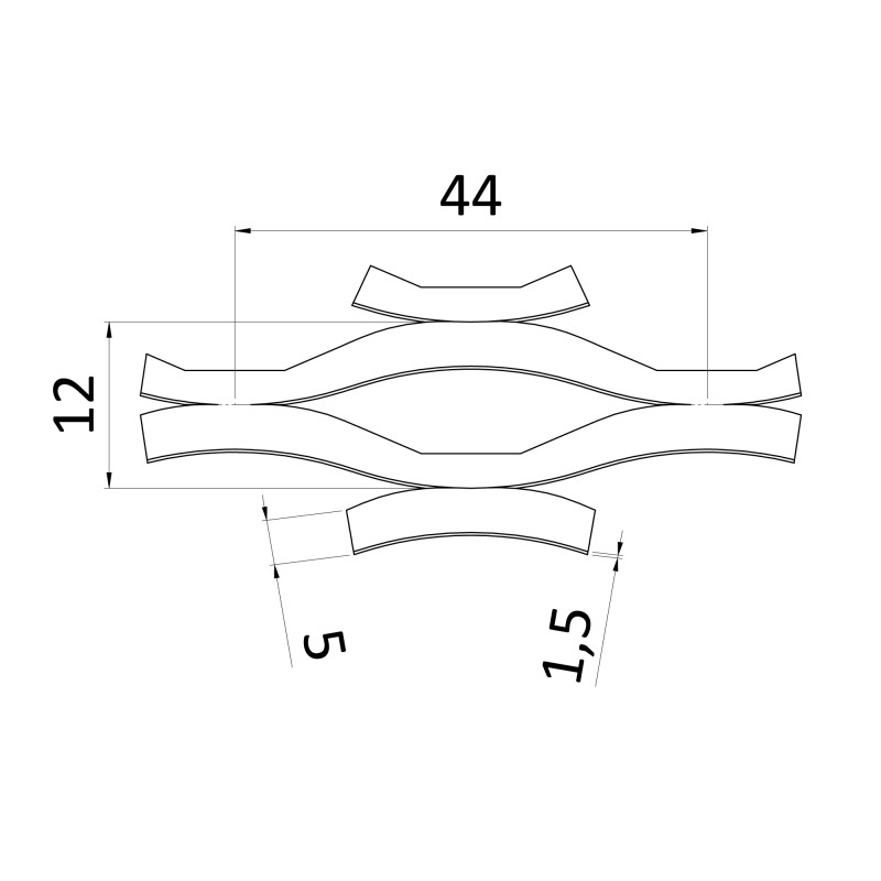 Ťahokov Al, kosoštvorcové oko: 44x12mm, mostík: 5mm, hrúbka: 2mm, orientácia oka: rozmer oka 44mm je rovnobežná s prvým rozmerom tabule