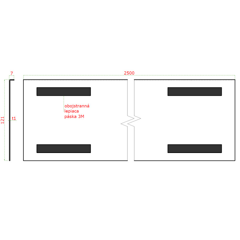 2.5m krycia lišta bočná-ľavá, brúsená nerez AISI304