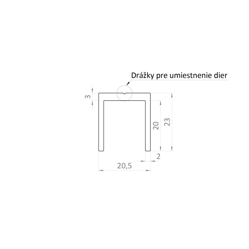 U profil 20.5x22mm, L-6000mm, prášková štruktúra RAL7016