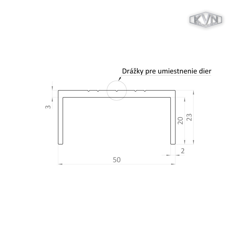 Poškodený U profil 50x22mm, L-6000mm, s povrchovou úpravou RAL7016