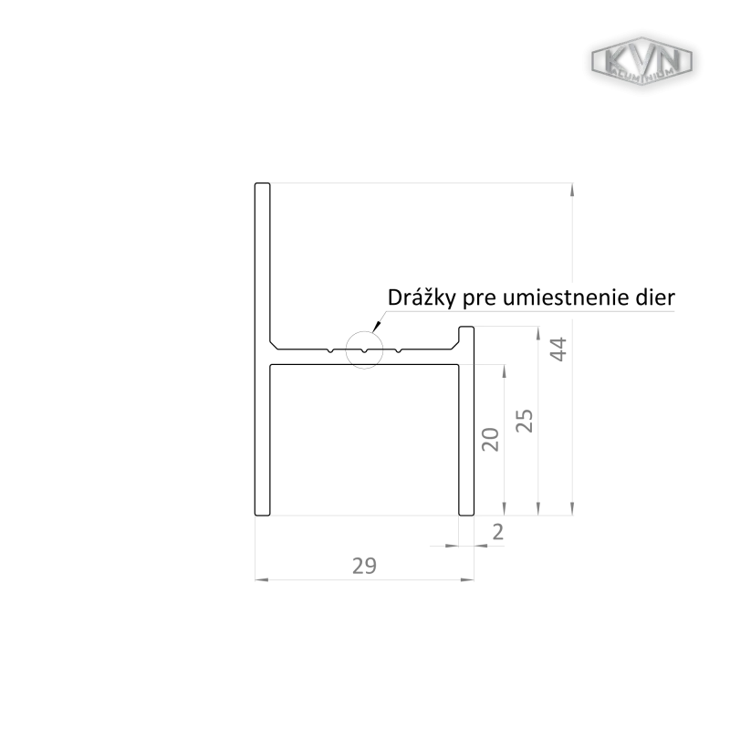UT profil 29x44mm, materiál EN AW-6060 T66, prírodný hliník bez povrchovej úpravy, cena za meter