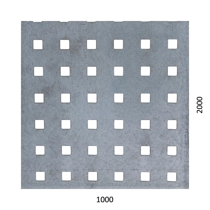 Dierovaný plech štvorcový radový Zn, otvor: 10x10 mm, rozteč: 20mm (1000x2000x1.5mm)