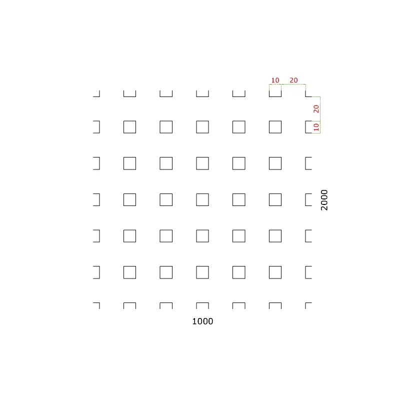 dierovaný plech štvorcový radový Zn, otvor: 10x10 mm, rozteč: 20 mm (2000x1000x1.5 mm)