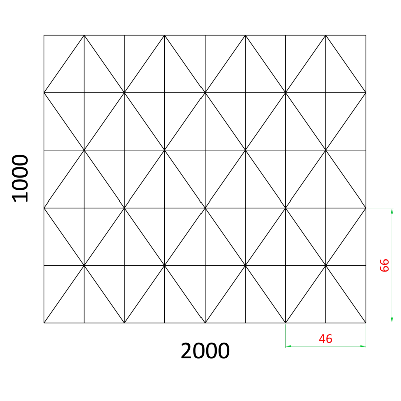 Plech oceľový pozinkovaný DX51D, rozmer 2000x1000x1,2mm +/- 0.5%, lisovaný vzor - IHLAN 66x46mm, 3D efekt