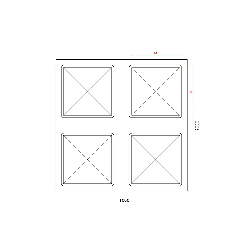 Plech oceľový pozinkovaný DX51D, rozmer 2000x1000x1,2mm +/- 0.5%, lisovaný vzor - ŠTVOREC 95x95mm, 3D efekt