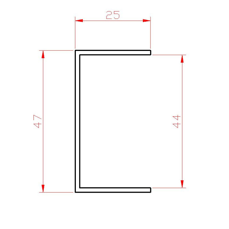 U-profil L-2000mm, 25x47x25x1,5mm, zinkovaný plech, použitie pre lamelu KLZ50Zn/KLZE50Zn, cena za 2 metrový kus