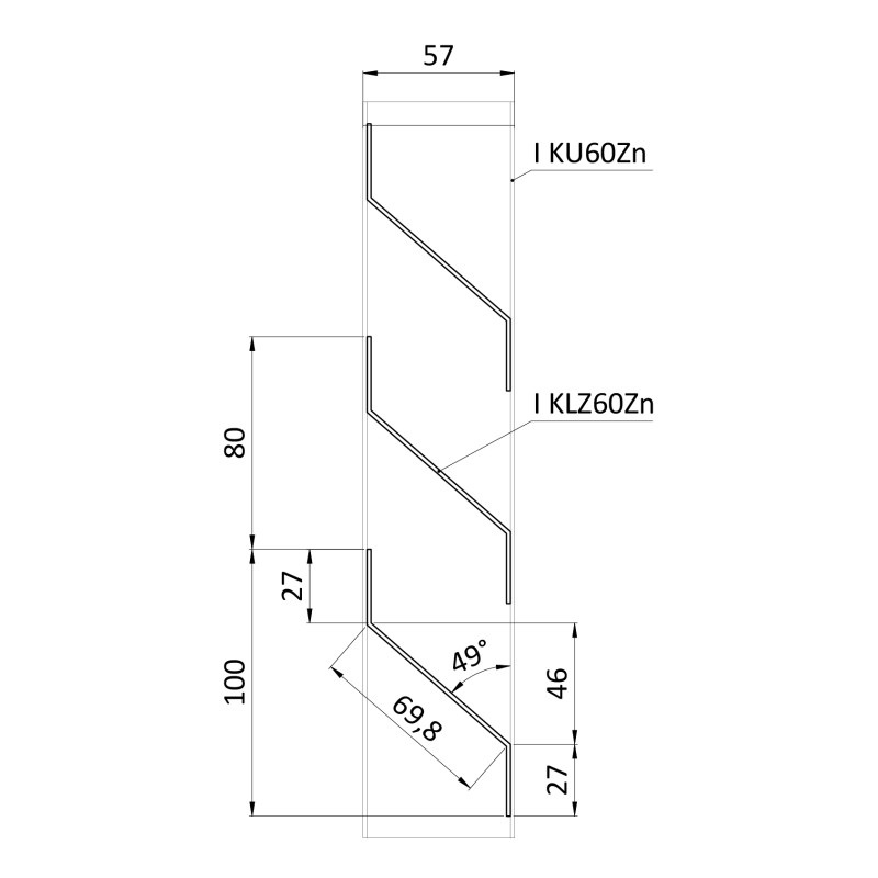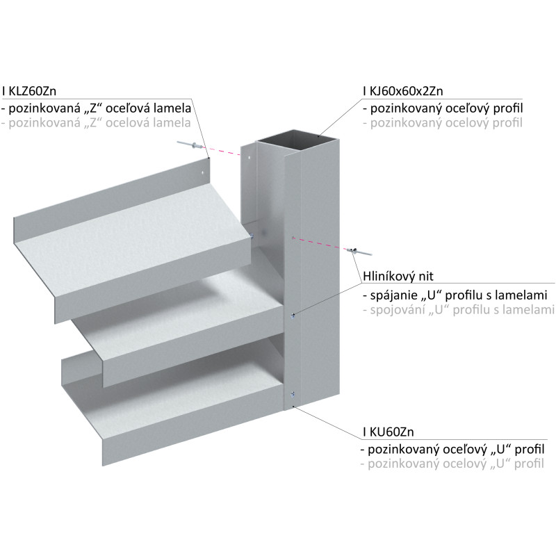 Z profil lamela L-2000 mm, 27x46x27x1,5 mm, pozinkovaný plech, použitie pre plotovú výplň, možnosť použiť s KU60Zn, cena za 2-metrový kus