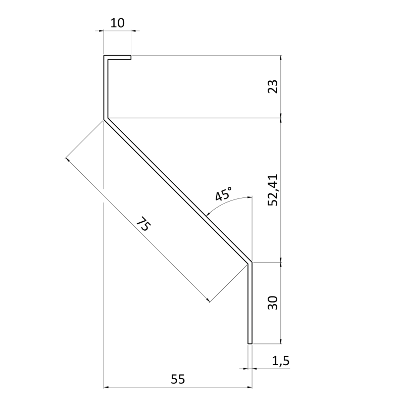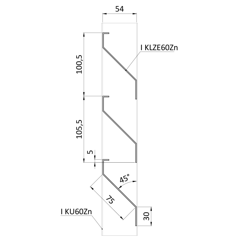Z-profil-lamela L-3000mm, 23x75x30x1,5mm s vystuženou hranou 10mm, zinkovaný plech, použitie pre plotovú výplň v kombinácii s KU60Zn a profilom 60mm, cena za 3m kus