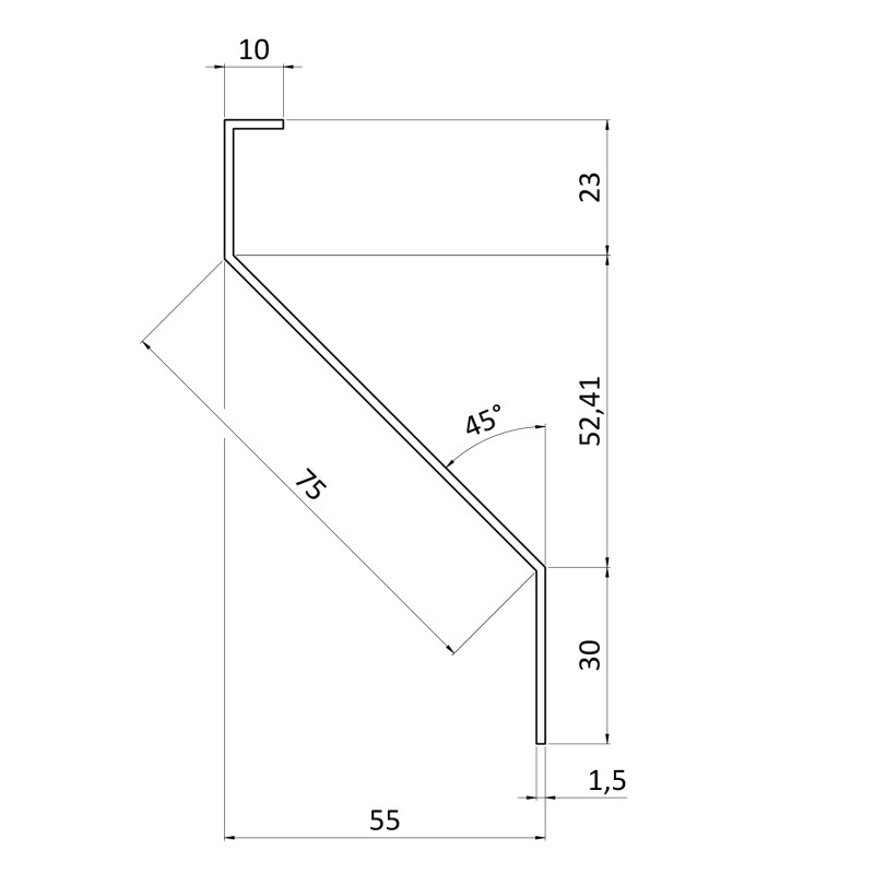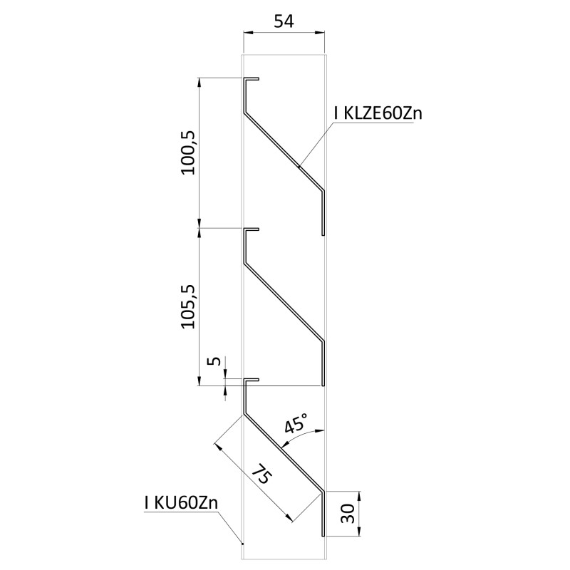 Z-profil-lamela L-4000mm, 23x75x30x1,5mm s vystuženou hranou 10mm, zinkovaný plech, použitie pre plotovú výplň v kombinácii s KU60Zn a profilom 60mm, cena za 4m kus