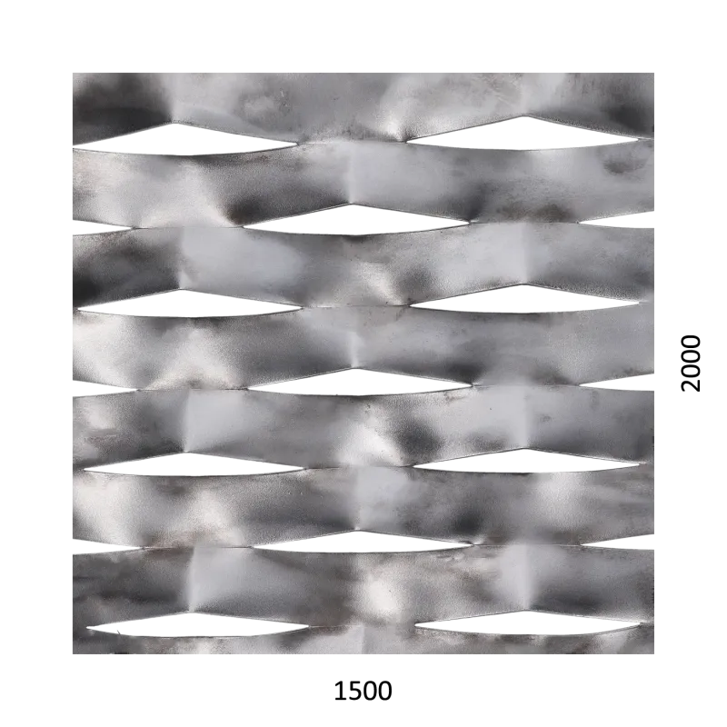 Ťahokov Fe kosoštvorcové oko: 114x53mm, mostík: 24mm ( 1500x2000x1,5mm ) perforácia 8%