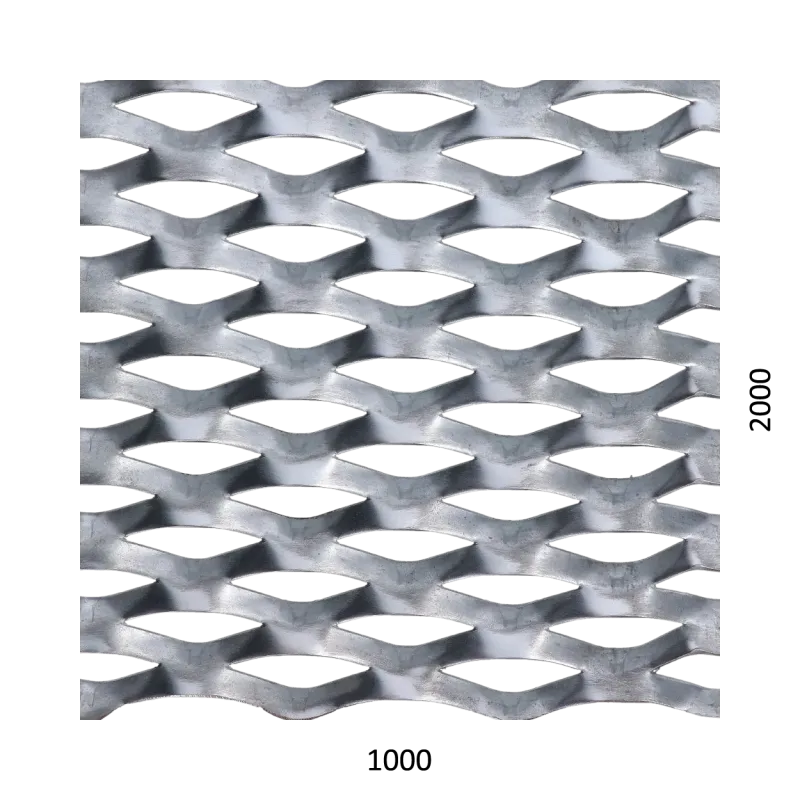 Ťahokov Fe kosoštvorcové oko: 62x25mm, mostík: 9mm (1000x2000x1,5mm) perforácia 28%