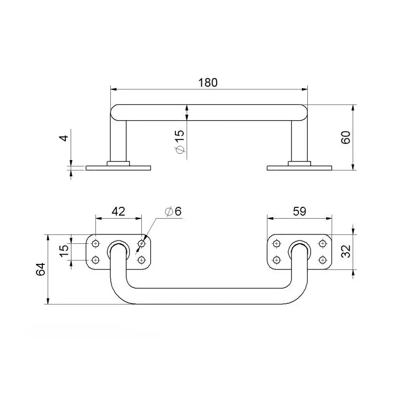 Madlo 180mm, ø14 mm, odsadenie 57 mm, čierna farba