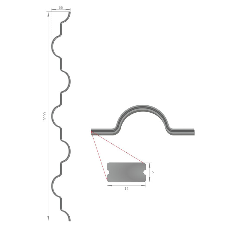 Mrežová výplň hladká 2000x65mm s bočnou drážkou, profil 12x6mm