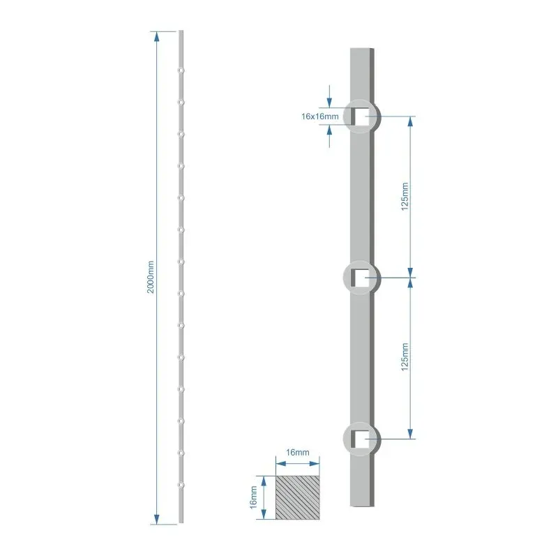 Profil 16x16mm, rozteč dier 125mm, 2000mmm, oko 16x16mm - 16ks