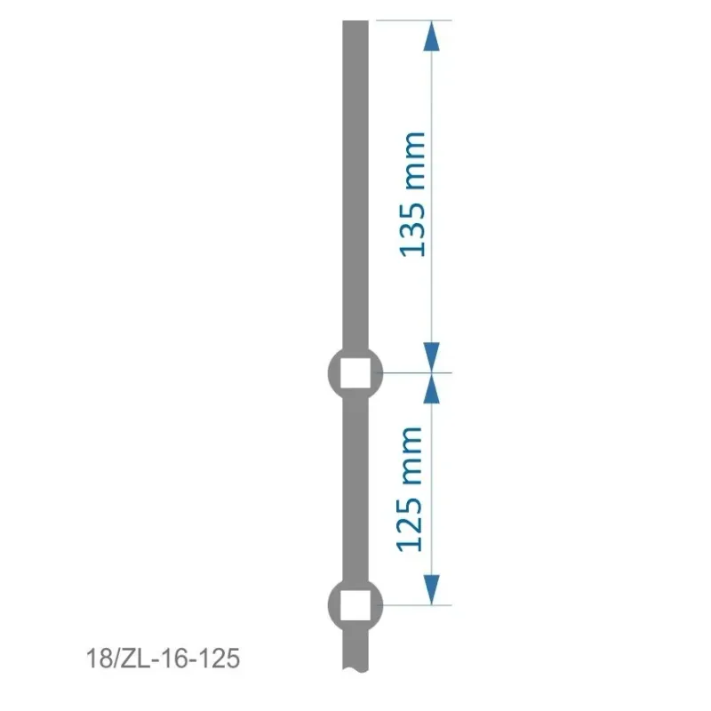 Tyč 2m opieskovaná, profil 16mm, rozteč 125mm, oko 16mm