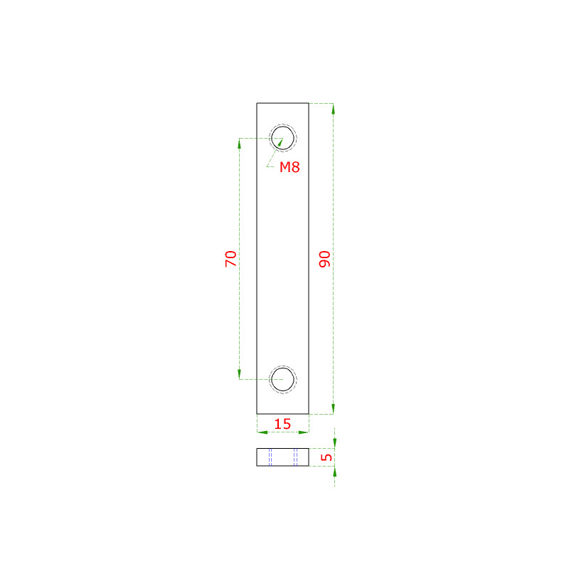 kotviaca platnička (plochá) 70x15x5mm, 2 x diera M8, rozteč dier: 70mm, bez povrchovej úpravy /AISI304