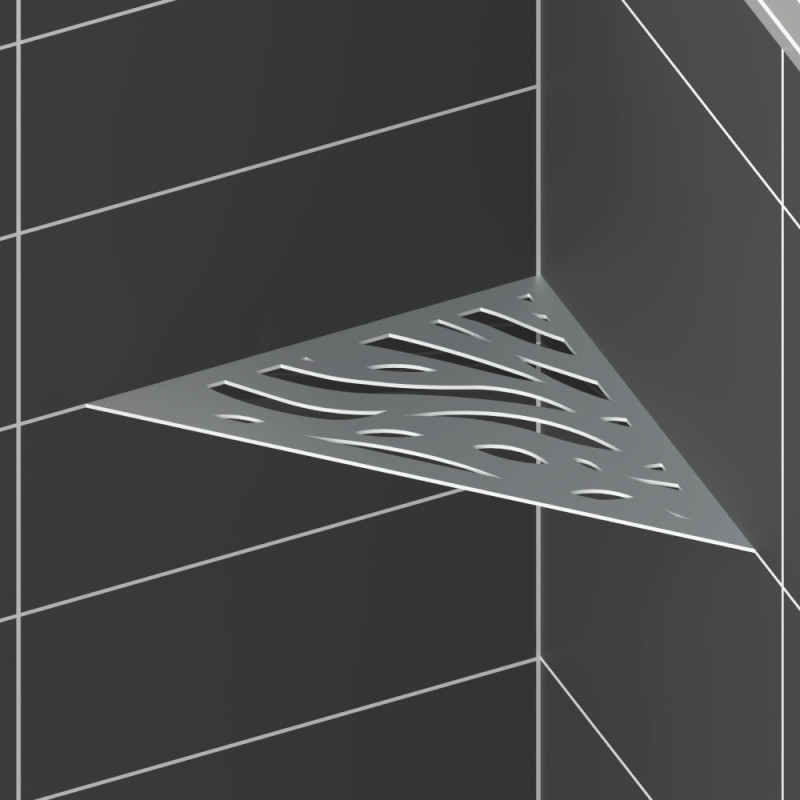 Rohová polica do kúpelne, brúsená nerez AISI 304 / K320