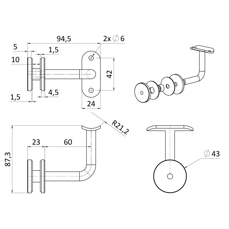 Nerezový držiak madla na sklo je špeciálne navrhnutý prvok na pevné upevnenie madla priamo na sklenené panely. Tento držiak je ideálny pre moderné zábradlia a schodiská, kde sa kladie dôraz na elegantný a čistý dizajn. Držiak je vyrobený z nerezovej ocele AISI304, ktorá je odolná a vhodná aj pre exteriérové použitie, pokiaľ sa nejedná o vlhké alebo agresívne prostredie. Pre montáž je potrebné pripraviť otvor v skle.