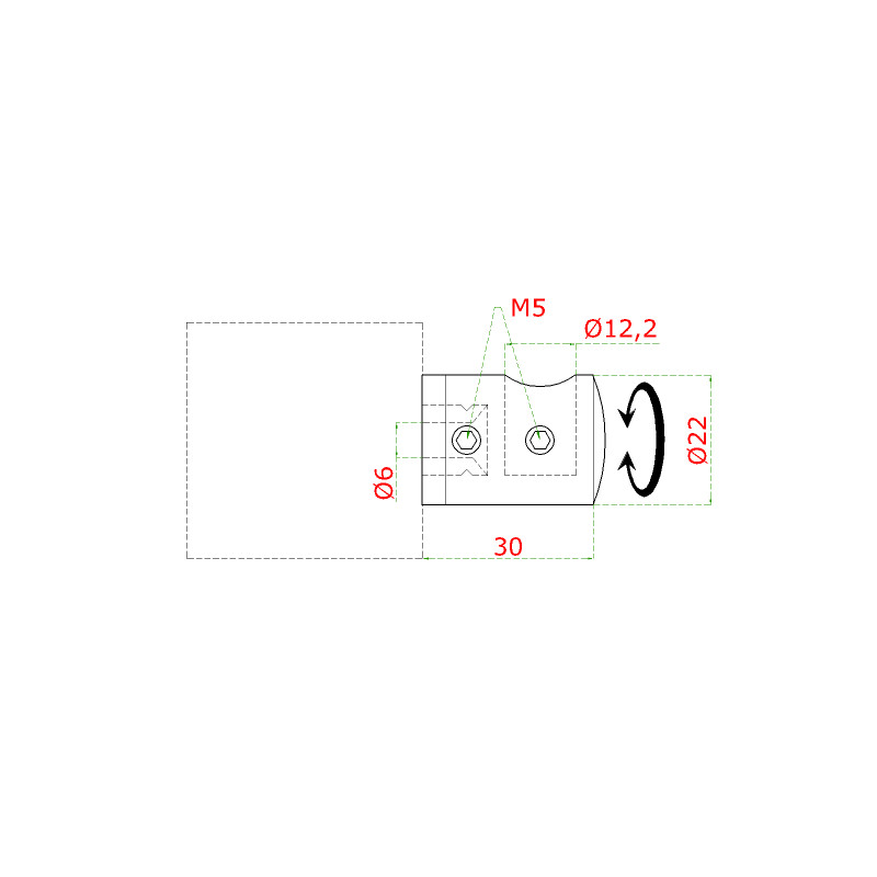 držiak tyče ø 12mm (koncový-ľavý) plochý (30x22mm), brúsená nerez K320 /AISI304