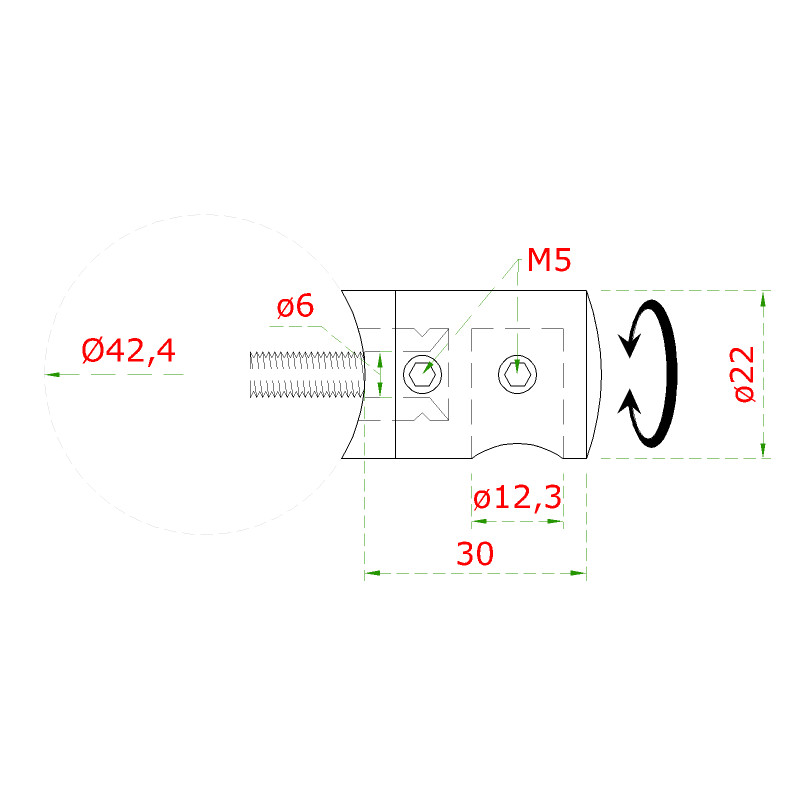 držiak tyče ø 12mm (koncový-pravý) na trubku ø 42.4mm (30x22mm), brúsená nerez K320 /AISI304