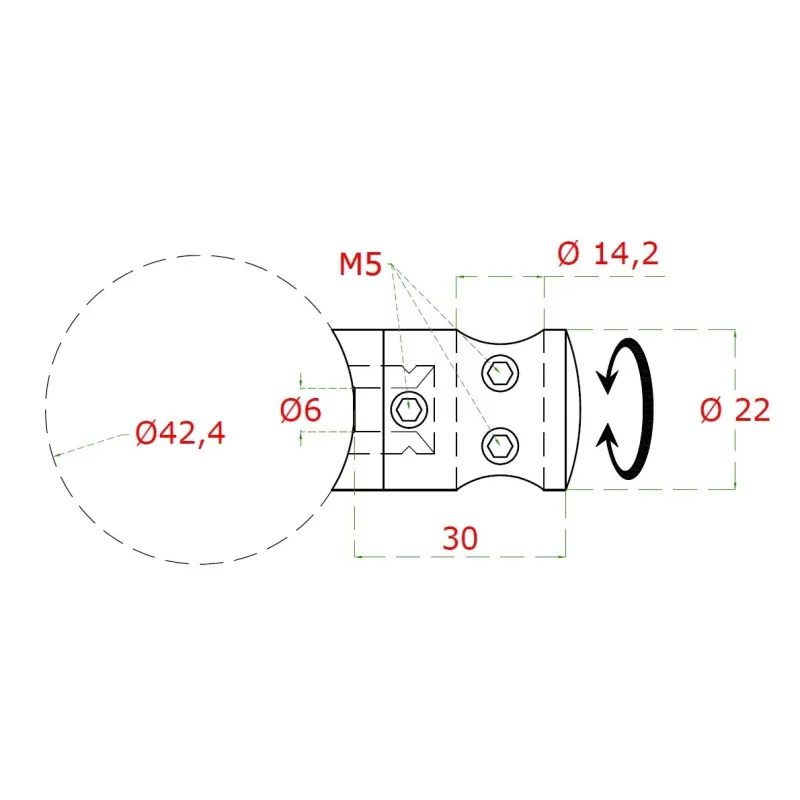 držiak tyče spojovací ø 14mm prechodný na trubku ø 42.4mm (30x22mm), brúsená nerez K320 /AISI304