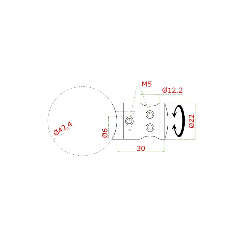 držiak tyče spojovací ø 12mm prechodný na trubku ø 42.4mm (30x22mm), brúsená nerez K320 /AISI304