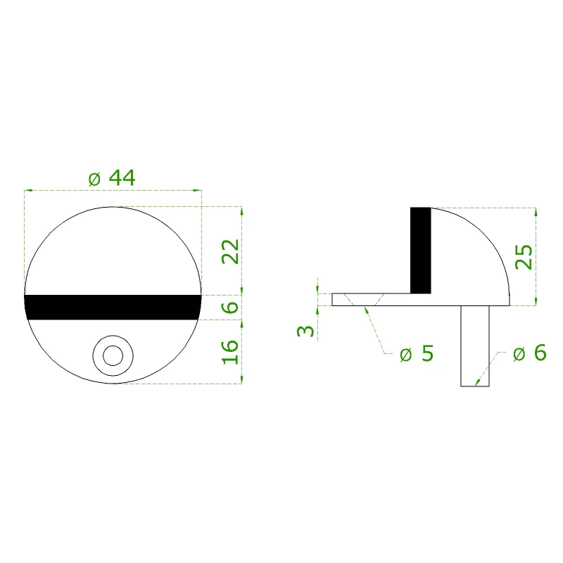 nerezový doraz dverí s gumou (ø 44x25mm), brúsená nerez K320 /AISI304