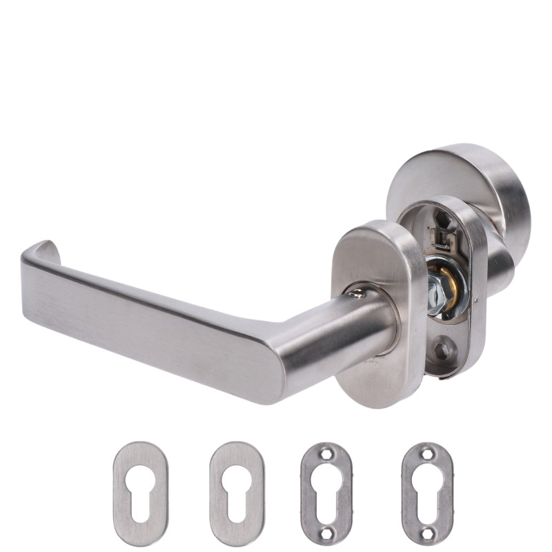 Kľučka (ľavá) + guľa oválna (pevná), vyhnutá vrátane dolnej rozety, brúsená nerez AISI304