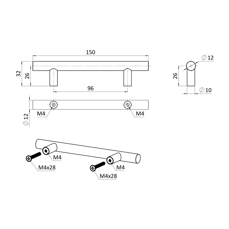 Úchytka pre rozteč 96 mm, dutá, brúsená nerez AISI 304
