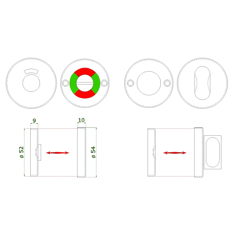 okrúhla rozeta s uzamykacou páčkou na WC dvere s ukazovateľom uzamknutia (ø52x31mm), brúsená nerez K320 /AISI304